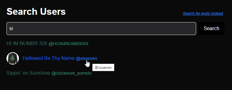 There are two search pages: Search Posts, and Search Users. You can search by keyword to find posts, and by username or display name to find users. In the coming time, these pages will be improved to allow for advanced searches, to help you find inspiring logs.